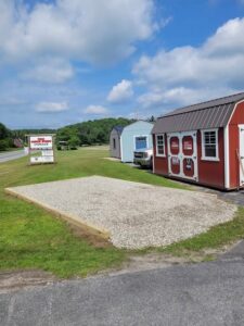 We have become an official dealer of Old Hickory Buildings & Sheds! You’ll be able to buy directly from our onsite inventory or place a customized order! Delivery will be included, financing available, and site prep available! Did you know that we also offer shed site prep services? Whether you need just a stone pad installed or a full leveled out space with a retaining wall like this one, we can do it!