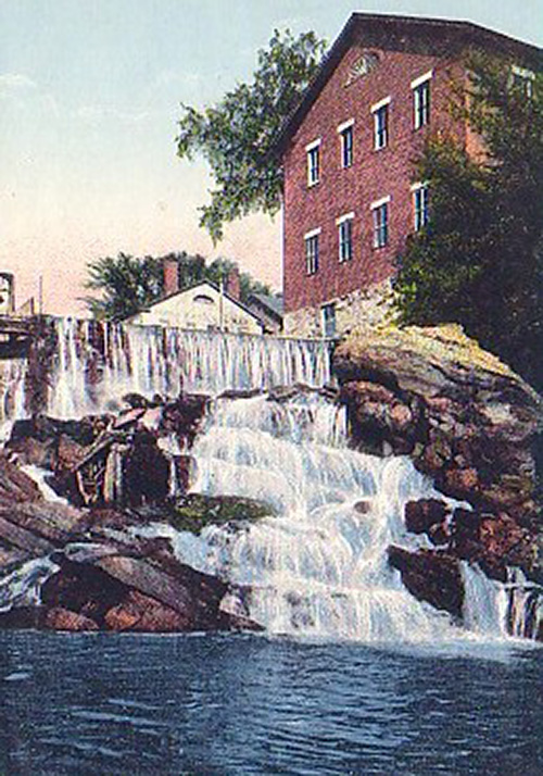 Water powered Brandon’s earliest industrial efforts. The foundations of the town’s earliest mills are still visible directly at Brandon's Lower Falls, directly across the Neshobe River from Green Park. Later, this was the site of Brandon’s iron foundry and the heart of local iron-goods manufacturing. Brandon’s iron stoves were very well known. Across the street, the present Town Office was the manufacturing company’s headquarters.